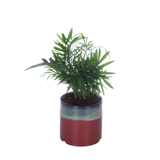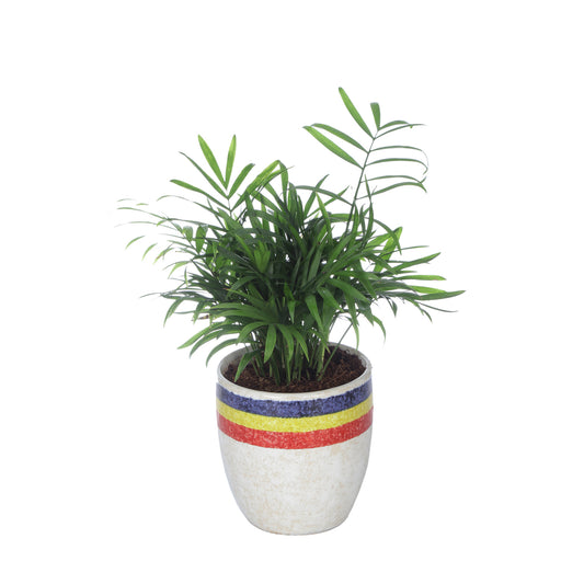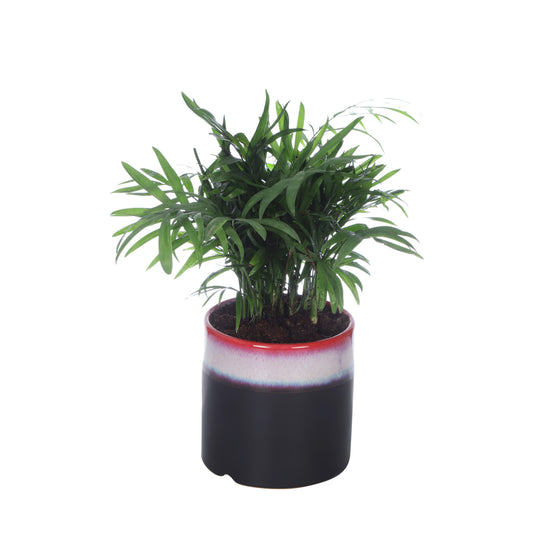 Exotic Green Oxygen Indoor Air Purifying Chamaedorea Palm (Parlour Palm) with Elegant Dual Colour Ceramic Pot