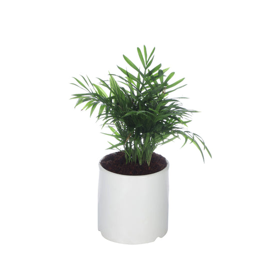 Exotic Green Oxygen Indoor Air Purifying Chamaedorea Palm (Parlour Palm) with White Colour Ceramic Pot