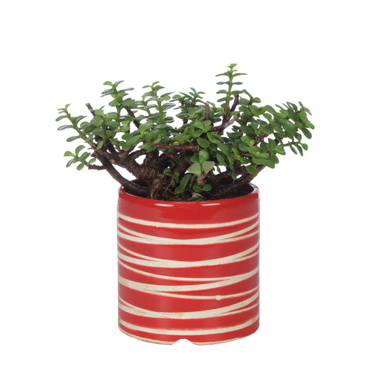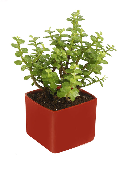 Good Luck Jade Plant with Red Colour Ceramic Pot for Home Decor (Live Plant)