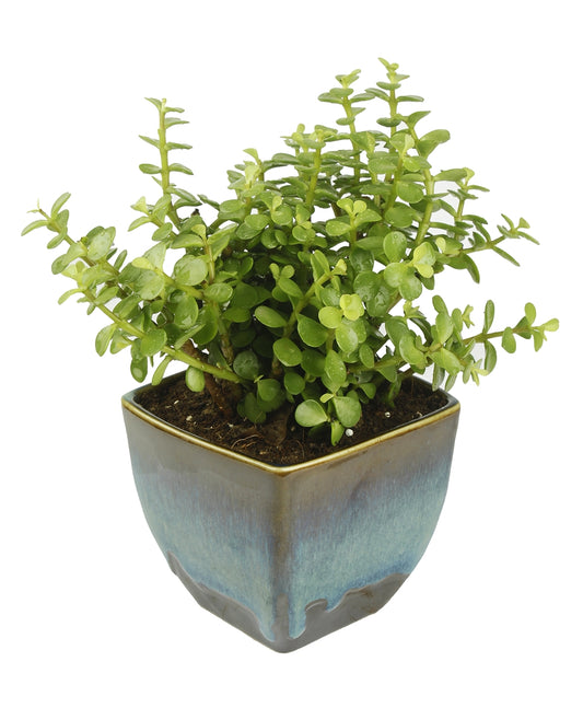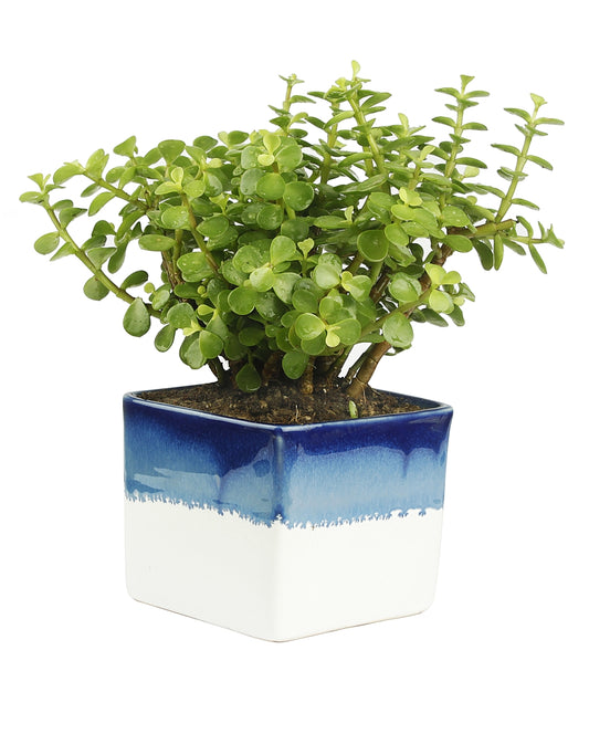 Good Luck Jade Plant with Dual White & Blue Colour Ceramic Pot for Home Decor (Live Plant)