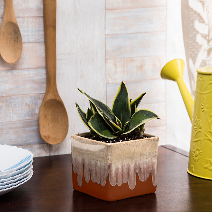 Exotic Green Indoor Air Purifying & Oxygen Sansevieria (Snake Plant) with Dual Colour Ceramic Pots