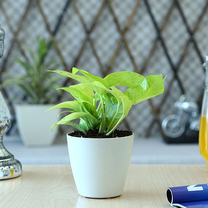 Exotic Green Air Purifying & Oxygen Indoor Golden Pothos Plant with White Metal Pot