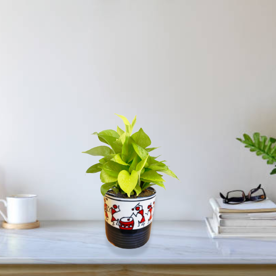 Exotic Green Handmade Worli Hand Painted Pot, Black & White Ceramic Pottery, Planter, Plant Container, Black & White
